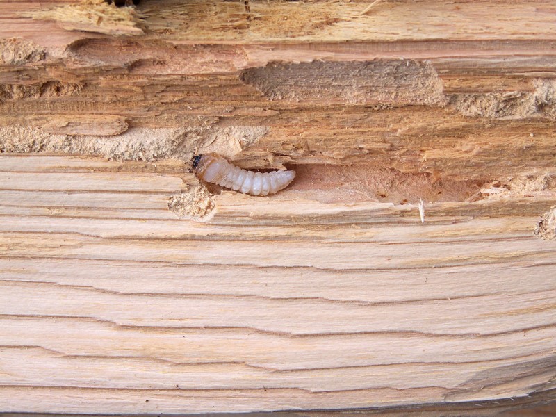 • Los escarabajos adultos ponen sus huevos en las grietas de la madera. Si lo hacen en la madera de la leñera no es un gran problema, pero dentro de su casa pueden infestar suelos de madera, muebles, vigas y estructuras de madera o incluso su apreciada biblioteca. De los huevos eclosionan las larvas que penetran profundamente en la madera donde se alimentan, y dependiendo de la especie, el ciclo puede durar hasta 7 años, construyendo un intrincado laberinto de túneles y galerías que afectan a la resistencia de la madera. Si usted no realiza ningún tratamiento de control, las larvas seguirán trabajando y a cada nueva generación la infestación será mayor llegando a poner en riesgo la madera de un edificio.